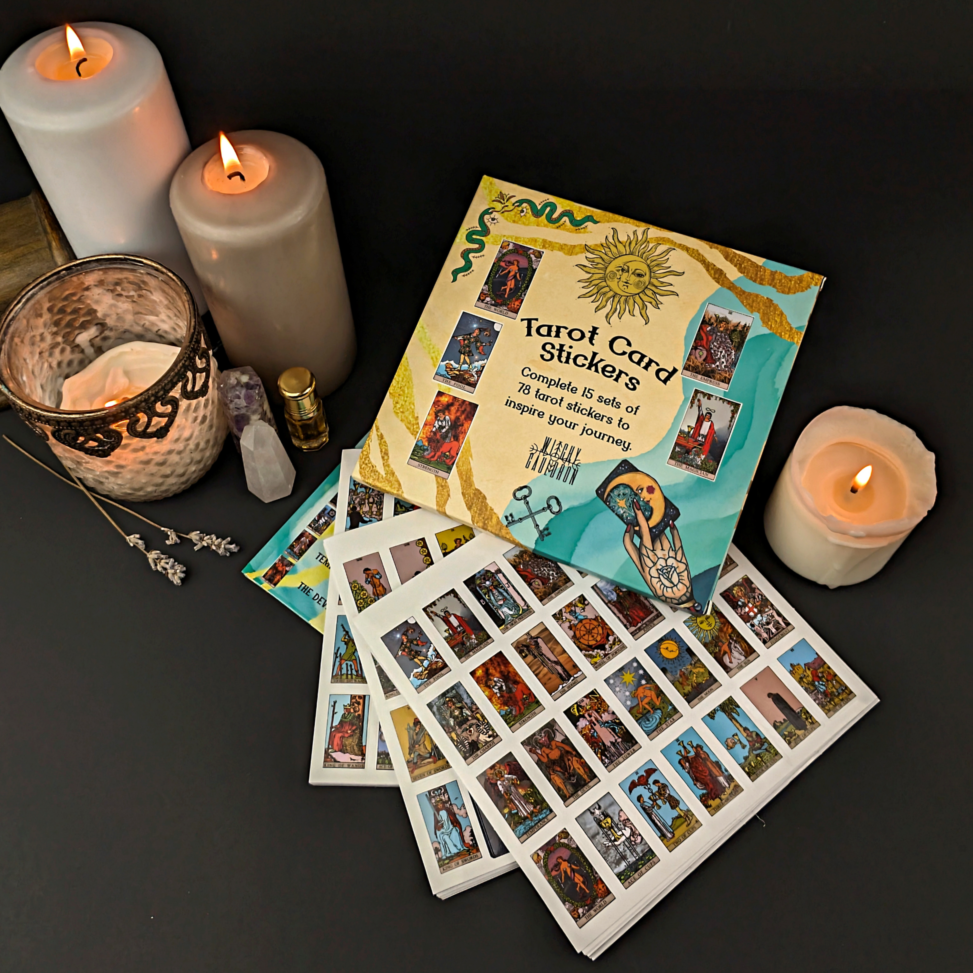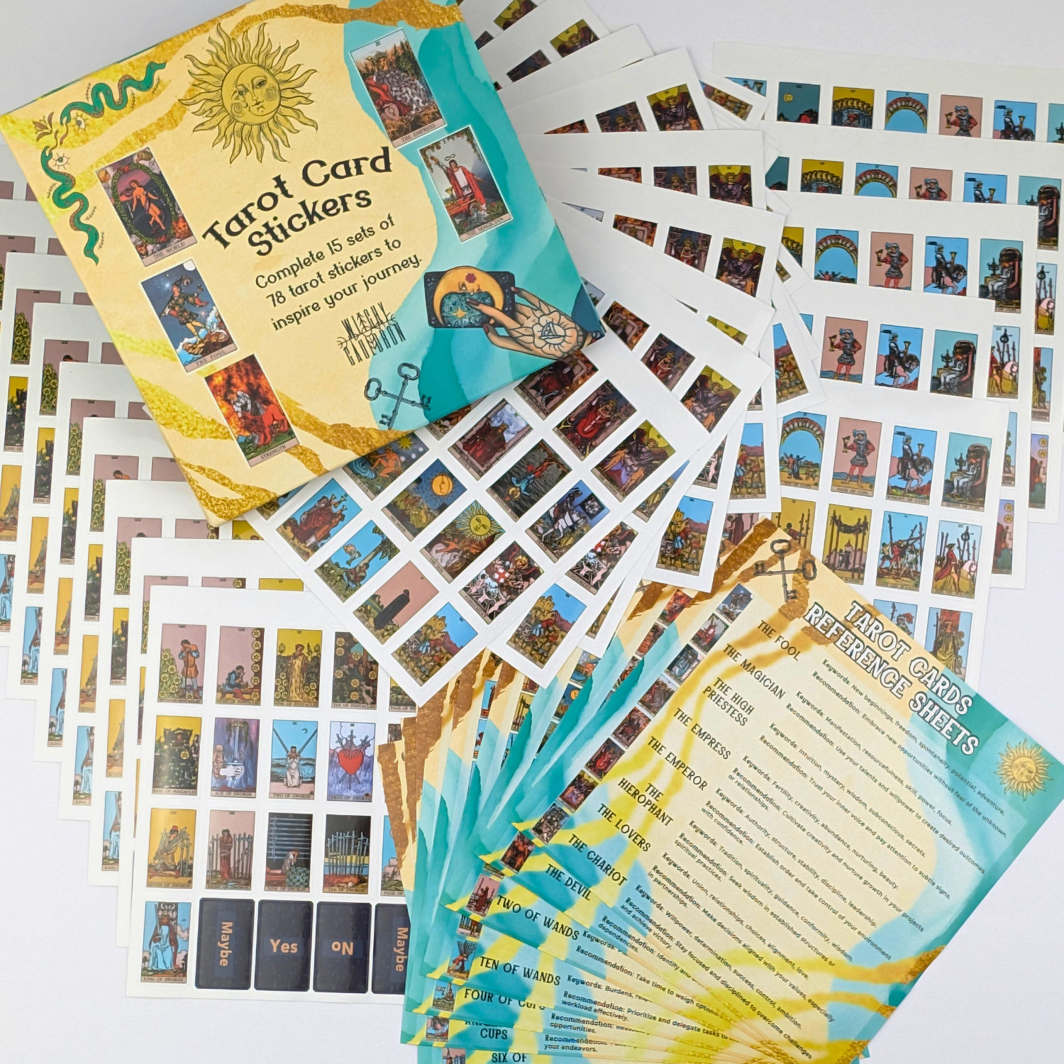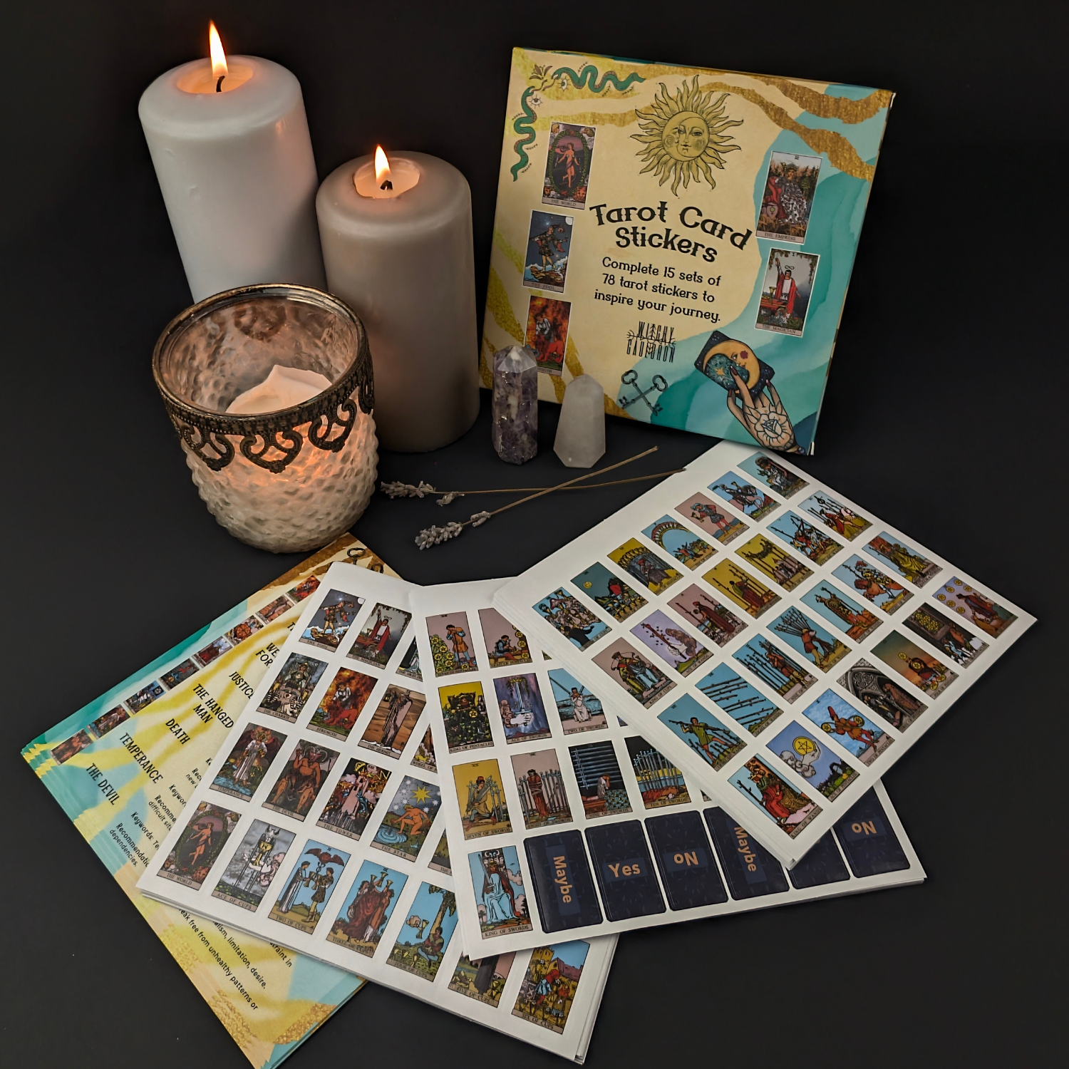 Bring the timeless magic of tarot into your daily life with this Rider Waite Tarot Sticker Set. Featuring 78 high-quality vinyl stickers, each representing a card from the classic Rider Waite tarot deck, this set is perfect for enhancing your journaling, planners, scrapbooks, or any creative project. Whether you're a tarot beginner or a seasoned reader, these tarot card stickers offer a unique way to connect with the symbolism and energy of the deck.