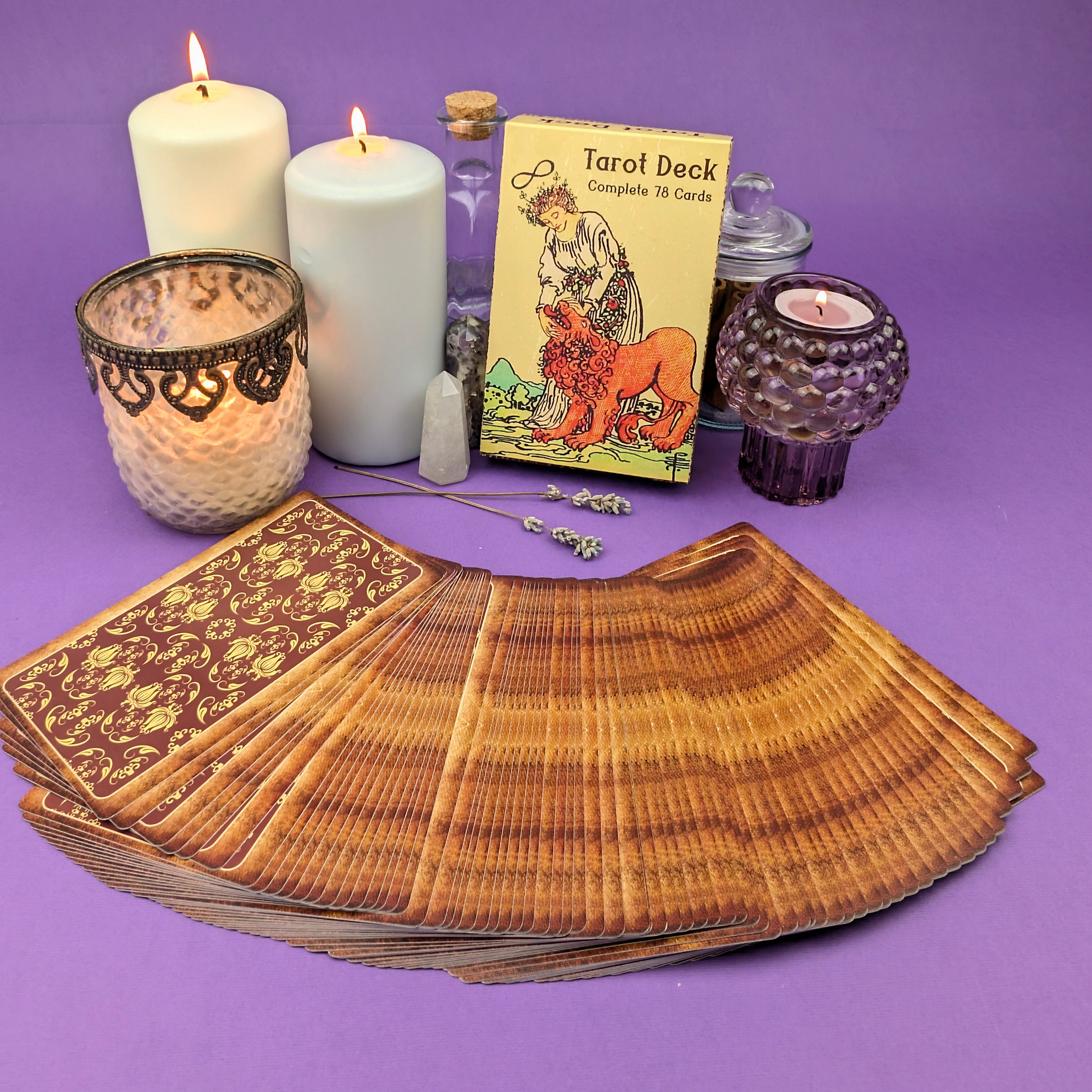 Our Witchy Cauldron Large Tarot Deck honors the timeless Rider Waite system, with enhanced colors that breathe life into every symbol—without altering Pamela Smith’s sacred designs. Each card is set against a real photographic background, connecting you to nature’s power, framed by an elegant vintage border.