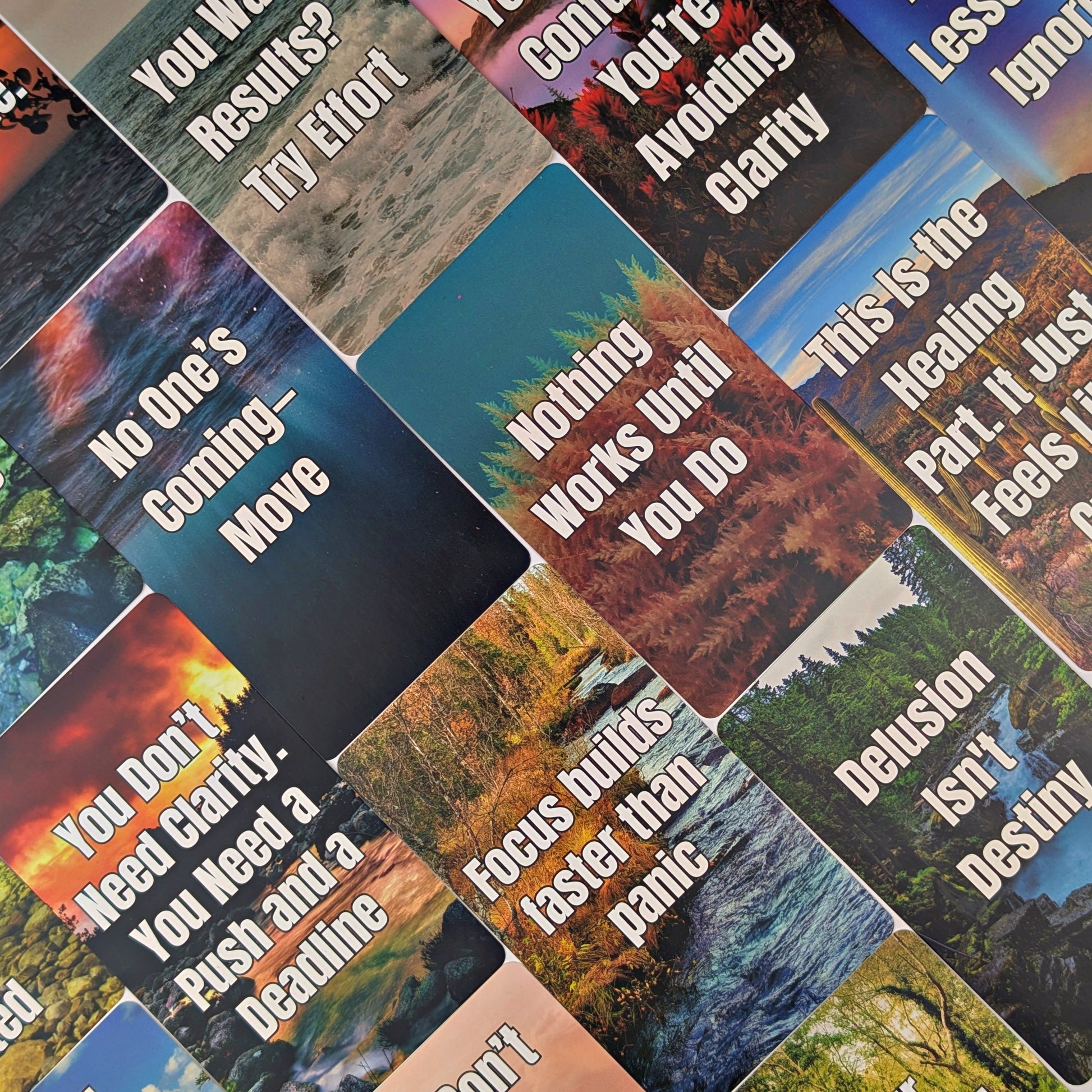 STRAIGHT TALK: Cards deliver blunt, actionable statements that confront avoidance patterns and push you toward taking real action